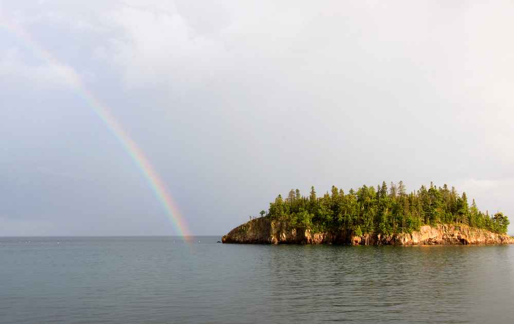 Rainbow Ending in Lake Superior